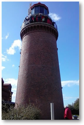 Marlene freute sick mit uns, den hoechstgelaegenen Lüchtturm (wenn hei ook mit 20,8 m Turmhöch tau dei lüttsten Türm in Düütschland gehüürt) tau erleben, dei ganz dicht bi uns inn Häger Uurt, westlich von Kühlungsborn up dei Bukspitz steiht bi dei Uurtschaft Bastorf oewer Buk noemt ward. Dei genaue Koordinaten sünd: 54° 07' 55'' nördliche Breite & 11° 41' 37'' östliche Länge alle 45 Sekunden giwwt hei vier Blinke (ein Rundümm duuert 180 sec) aw. Oewrigens abends bi Dunkelheit seihn wi uut uns Stuuw in dat Hochhuus in Lütten Klein disse Blinke un Marlene freute sick mit uns oewer dit Erläwnis. Hei lücht 78 m oewer denn Meersspeigel un hett ein Füerhöh' von 95,3 m. Bitt tau 25 Seemeilen kann man dat Lüchtfuer seihn. Dat bedüüt, bit inne Wismarer Bucht is dat Fuer tau seihn un warnt hier ook vör ein Sandbank. Dat Licht schient somit 40,23 km wiet.