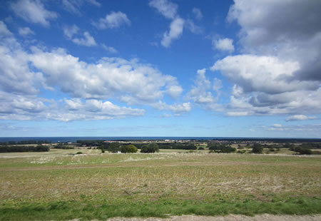 ...denn baeten wierer na Osten, datt Steinkahlenkraftwerk mit denn hoogen Kühlturm un ook uns Hochhuus in dei Ahlbecker Straat 8 wier tau seihn. Föt Marlene wier allens natürlich ein' grote Oewerraschung, disse Landschaft un dei Ostsee tau erläben. Dei wellige Landschaft mit denn Holt inn Süden gehüürt tau dei Endmoränenlandschaft vonne Kühlung. Oewer uns dei blage Himmel mit lütt un grote Wolken, dei vonn Ostwind dräben wüüren wat künnt Schöneres gaeben in disse Stunn hier inn Häger Uurt, twüschen dei Ünnerwarnow un Rostock inn Osten un dei Kühlung inn Westen, mit einen Blick na Rerik inn Westen. Dei Nuurden hett uns Marlene dat andahn un sei warrt woll ehren Wech von Löbau, in Sachsen, na hier "baben" maaken, üm Arbeit un dormit ein nieges Ziel in ehr Läben tau finnen. Bestimmt hüürt wi von ehr in dei nächst' Tied von ehren Umtöch anne Küst mit dei schönen Lüchttürms, datt blage Waarer un dei gesunn Luft in Mäkelbörg-Vörpommern.