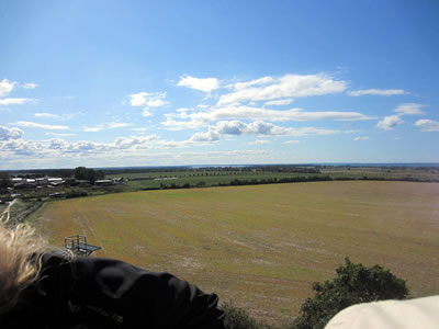 Wi sünd natürlich hier mit uns Beseuk hoch gahn un von baben dei schön Uutsicht ower denn Häger Uurt genaaten inn Westen seihn wi datt Solthaff, na Nuurden hebbt wi dei Ostsee oewerblicken koenen un bitt na Falster (dei Südspitz von Dänemark) seihn künnt, ümmer dei blaage Ostsee un dei witten Wolken vör Oogen und na Osten seihn wi dei Warnowwerft mit ehr Kabelkrananlaach...