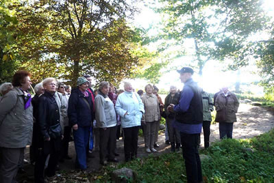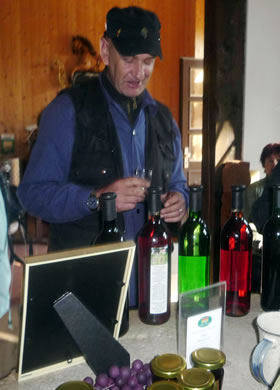 Wi wüürn von einen fründlichen 40-jöhrigen Mann in Winzerhemd vör dat Schlott empfangen. Hei stellte sick uns as de Winzer von Rattey vör un gewünn glieks dörch sien fröhlich upschlaten Wesen uns all as gaude Tauhüüreres. Wie wullen natürlich weiten, wie de Rebstöcke hier na Mäkelborg-Strelitz kamen sünd; hei bremste uns in uns Raasch un verspröök, uns allens tau vertellen, denn hei harr von Anfang an allens mitmaakt. Doch noch bliwwt dei Fraach, wie dei Wienanbuu hierher na Mäkelborg-Strelitz kamen is.