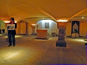 Trepp bün ik rünnergahn in de munkelige Krypta. Een kann