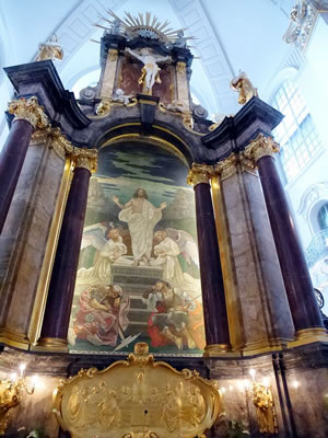 Un denn noch eenmaal dat Altarbild mit de groten Marmorsülen