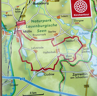 Chrisching, Ingrid un ick gahn up den'n Kirchbarg. Ein Schild wiest uns dorup hen, dat wi de Anlaag mit Würde beträden salln. Dat is doch klor, orrer möten de Minschen ierst dortau ertreckt warden? Ein Friedhoff is doch kein Spälplatz... Wi besäuken de Grawstell von Till, betrachten de Tafel an de Kirchenmuer, de up de Konfirmanden von 1937 henwiesen deit, de heimlich von Lübeck na Mölln führt sünd, wiel ehre Pastoren inspunnt worden wiern. Einen Ogenblick sitten wi ünner den'n groten Bom un schmieten einen Blick up de Oltstadt ünner uns, denn beträden wi de Kirch. Ick leiw Gespräche, de nicks mit Führung tau daun hemm' un liekers informativ sünd. So wat erläwten wi all in Hamburg, Ribnitz, Stralsund usw. Hüt hemm' wi hier ok Glück. Eine hübsche fründliche Fru vertellt uns allerhand. Sei is woll de Köstersch. Ick stell fast, dat in disse Kirch allerhand Kunstwarke vermakt sünd, un sei bejaht dat stolt. Ingrid hett väle Fragen, dörch de eine richtige Ünnerhollung taustand'n kümmt.
