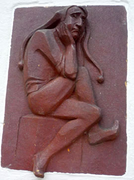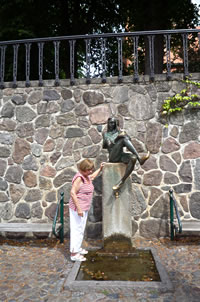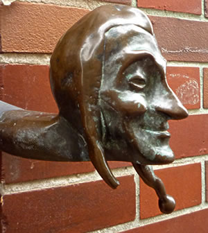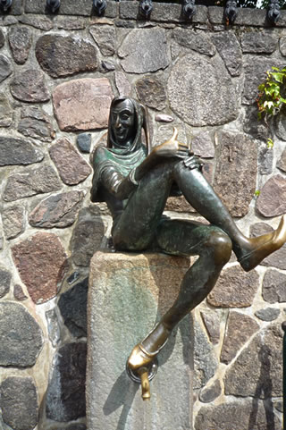 Eulenspiegel-Brunnen "Mak dat doch Ulenspeigel na, Till sitt dor baben un grient dal, Putzt du den'n Dumen un mien Fäut, Mien Speigel har för mi Gewicht.