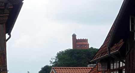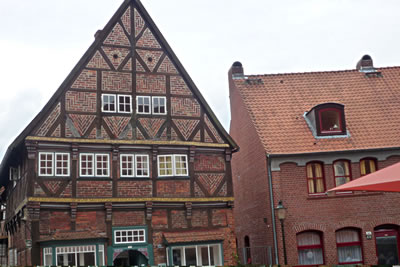 Interessant is, dat dat bi disse schönen Hüser ok einen Pranger gifft. Vör Hunger har ick den'n gor nich estemiert. Dorbi is an de Kett noch ein Halsring tau seihn. In dat Museum seih ick denn ein Stück Pranger ut Holt. Ick har bether bloten einen Pranger an de Mosel seihn, un gliek har ick de middelöllerliche Geschicht' vör Ogen.