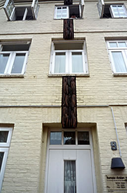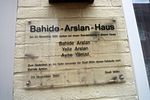 Ein Hus, dat mi dull bewägt, dat is ein wittes Hus mitten in de Oltstadt. Dat hett eine trurige Geschicht. Minschen, de Utlänner hassen daun, planten einen Anschlach in Mölln. Sei güngen siehr raffiniert vör, lechten bi Utlänner, ein Stück wech von dat witte Hus, ein Füer un röpen de Füerwehr an. De rückte fix ut. So harn de Verbräkers denn Tiet, in dit Hus, gor nich wiet von Till wech, ein kräftiges Füer tau leggn. Eine Grotmurrer un ehr twei Enkelkinner sünd dorbi üm't Läben kamen. An dat Hus sünd ein grotes un ein lüttes Relief anbroecht worden. Miene Ogen seihn dorin Flammenmuster, de bet babenhen züngeln daun. Fraagt heff ick nich, ob dat stimmen deit, empfunnen heff ich dat so.