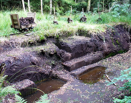 Vadder smeet mit den Torfspoar'n de nadden Torfsoor'n jümmer twee up eenmoal ut de Kuhl' herut, ick pack'e se up de Koar un schow se weg un sett'e se denn to 'n Drögen in Reegen up jümmer twee bi twee krüüz un quer öwer'nanner in fief Schichten. Bold wurd' dat ganz oasig warm dat gung up Middag to. Vadder un ick moak'en us öwer de moije Boddermelkzoppen her, de Mudder us inpackt har' doarto noch 'n ordentlichet Mettwußbodderbrot. Moorluft moakt smachtig. Noa 'n lüttje Middagspause gung dat Arbeiten wieter wi hewt denn doch noch 'n ordentlichet Pand schafft. Mien' Knoaken kull'n mi dat weer oawer nix gegen dat, wat ick an dissen Dag mit Vadder in 'n Torfmoor all' so to seh'n krägen har!!!