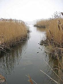 een smalle Schneis in't Reet lepen wi in Busserts lütten "Haven"