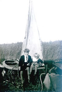 Dat duurte nich lang, dor keem vun Gegenöver ut Richt Kinnbackenhagen een Seilschipp, een lüttes Zeesboot. So bit an dörtig Meter keem dat Schipp an't Över ran. De Segel susten daal, de Anker platschte in't Wader. De Schipper rutschte ut sien Schipp in't Boddenwader, dat ehm binah bit to sien Bost reikte. Een waderdichte Antog, Stevel un Antog in en Stück, schütte ehm. Werner Bussert keem as so een Oort Wadergeist dörch dat Wader platscht: Kopp vörweg, un mi de Hannen wöör rodert. Un "Wupp!" harr he mi all up sien Schullern nahmen un watschte un platschte trüch to sien Schipp. Up lieke Wies halte he Mudder an Bord.