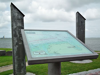 an de Nordersiet un de gewaltigen Schlüüsenanloagen van