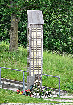 De Dukdalben schallt de op See bleven Doden Ehr geven. Blomen