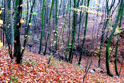 dörch den depen Woold. Neven uns leep in en depes Daal en Beek.
