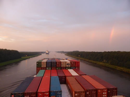 Freuh an neegsten Morgen sull dat dörch de groote Slüüs vun Brunsbüttel gohn. Sommerdags stoht dor Barg Lüüd un froogt de Kümo-Schippers, wat se sik nich achtern anhangen köönt. Op de Ort wulln se dörch den Kanool komen. Seilen dröffst du in Kanool nich un ok mit'n Butenborder fallt di vun dat Geratter bald de Ohren af. Sik schlepen loten is de ideole Weg, üm no de Oostsee to komen. Ik harr in miene Hobentied mit Kümoschippers to doon un wuss genau, woans ik jem ansnacken müss. Roop du mol "Herr Kapitän" to so'n Ammerkacker ut de Lühe; keen Oos kiekt hooch. He weet gornich, dat he meent is. Schree "Schipper" un he dreiht sik no di üm un will weten, wat du vun em wullt. En Tallymann is för'n Schipper en heel wichtige Person. Wenn de Tallymann sik vertell, fehl den Schipper Lodung bi'n Löschen. As ik een vun de Schipper vertell, dat ik Tallymann bün, hett he uns glieks inlood, dat wi uns bi em achtern an den Kümo anhangt. Gerd geev siene Lien as eerste röber un nehm uns op'n Hoken. Denn güng dat ut de Schlüüs rut un wi tuckerten sinnig dörch den hunnert Kilometer langen Kanool. Wat mookt Schippern doch för'n Spooß. Mi full op, dat Gerd sien Schipp achtern keen Nomen harr un ok de Vereen fehl. Op miene Froog vertellten de beiden, dat se mit de Restaurierung vun jemmer Schipp grod fardig worrn weer un se harrn sik noch keen Nomen utdacht. Se weern noch an öberleggen un wulln dat op düsse Reis klormoken.