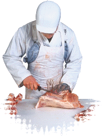 Na, ick geef em sien Plünn un güng mien'n Weg alleen wieder. Ick keek mi nochmol üm un sehg, dat mien Kolleeg in'n Groben seet un sick eersmool verhooln deh. Denn de Slachtergeselln harrn em beus toricht. Ick funn in'n nächsten Ort Arbeit un heff mien'n Slachterkollegen nie wedder sehn. Dit sünd nu all veele Johrn her, ober ümmer, wenn ick dörch de Stadt goh un an'n Slachterloden vörbikoom, war ick an mien Handwarksburschentied erinnert, un an den'n Dag, wo ick Slachter speelt heff. Scheun weer de Tied doch. Ick much se nochmol torüchhebben! Blot in'n Slachterkittel kreeg mi keener wedder rin. Krischon, bring uns noch twee Grog, ober'n beten nördlich!" |