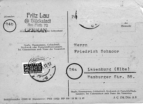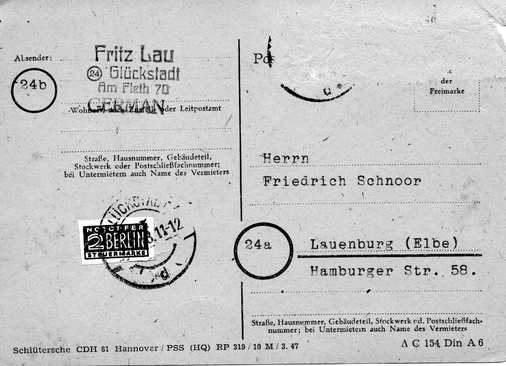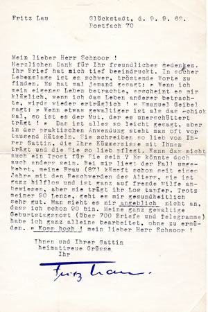Breef vun Fritz Lau an Friedrich Schnoor.