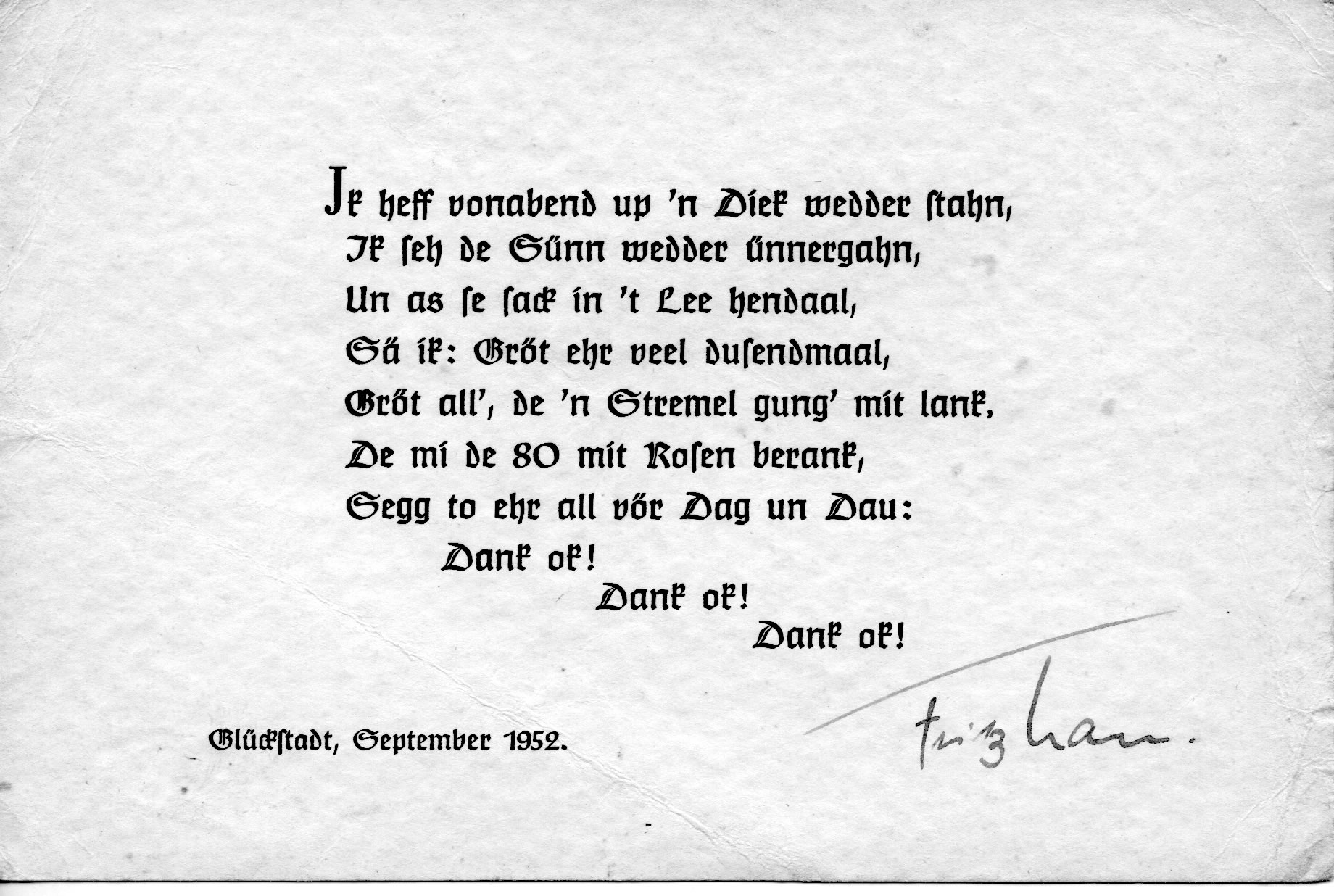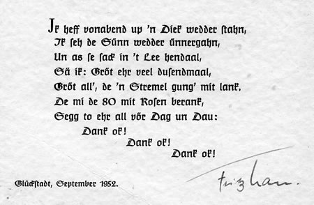 Riemel vun Fritz Lau. Klick op to'n Vergröttern!