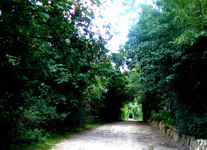 kamen. Aver wie dat so is, bumms weern wi vörbi! Wat harrn wi dor för enen smucken olen Landweg tofaten kregen! Vörsichtig müss ik dörch so allerhand Slaglöker deelwies mit Water füllt stüürn. Wi weern de eenzigen Autofohrer up den Weg. Aver dat weer so en smucken Landweg, wi kunnen uns gor nich satt sehn. Denn heff ik mi bannig verfehrt, heff mit enen Ruck dat Auto stoppt. Vör mi stünn en groten Kerl. Wull de uns verjagen? Aver ne, de Kerl weer ut Holt. Wi sünd denn eerstmal utstegen un hebbt uns den Kerl genauer ankeken. He stünn vör en Tor. Achter dat Tor weer en smucken Diek to sehn. An't Över vun den Diek stünnen noch mehr Figuren ut Holt. En Seejungfer "Undine", Neptun un noch anner Figuren. En Segelboot "Christel" leeg an Land. Genauer kunnen wi dat nich utmaken. An dat Tor stünn en Schild "Betreten und Angeln verboten!" Seker stünn de Mann mit de beiden Hunnen dorüm an dat Tor. Wi harrn dat Geföhl, dat wi in en vertöverte Welt weern. Nadinkern güngen wi torüch na uns Auto. Wokeen gehöör düsse Diek, wer harr dat allens upbuut? Dat müssen wi rutkriegen. Langsam föhren wi den verwunschenen Weg wieder. Dat Water vun den Diek schemer ümmer dörch de Büsch. Up en Wisch grasen swattbunte Kööh. Wi hebbt noch wedder anhollen, kunnen nich noog kriegen vun de schöne Natuur. Up den Schooh vun mien Fründin harr sik en Grashüpper daalsett. Wiet un siet weer keen Minsch to sehn.