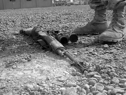 Wieldat hier strategisch "offenes Gelände" weer, müssten Klås un sien Leidensgenossen kort dorvör "in Deckung" gåhn un op'n Buuk dörch düsse Panzerspoor krupen oder robben hen un ok wedder torüch! As se dat denn achter sik harrn un wedder op 'n Dutt tosåmen stünnen, kreeg man dat spitz, dat een vun de armen Suldåten sien "Bruut", so heet dat Gewehr in de Suldåtenspraak, in de depe Matsch verloorn harr. Op de Steed heter dat för all "Deckung" un wedder dörch de Panzerspoor, de "Bruut" söken. Nåmiddag, Klock veer, güng dat wedder "im Gleichschritt, Marsch!" in de Kaseern torüch. Op düssen Weg geev denn de "Togföhrer" miteens Gasalarm! So gau, as man in de Lååg weer, müsst man de Gasmask', dee offiziell "ABC-Schutzmaske" heten deit, opsetten, denn een anner Utbiller harr gliekstiedig Trånengas utspröht, sodat doch de een oder anner dat Hulen kreeg, wieldat he nich gau noog weer. Dormit weer de Schikanerie nå anstrengende Nacht un Dag noch nich to Enn. Mit de Mask' över't Gesicht keem de Order: "Im Laufschritt Marsch!" un bi't Lopen schreeg wedder een anner: "Ein Lied"! Nu lepen also de restlos utlenzten Rekruten in vulle Marschkledååsch, mit Gasmaske vör de Snuut, un dat "Gewehr in Vorhalte" kläglich singend dörch en Waldstück. Klås weer noch an't Överleggen, wat he sik nich eenfach hensmieten schull, so beet as he weer, åvers dor full ok all een op de Nääs un dormit weer denn de spökelhaftige Schikanerie, för dee Klås noch hüüt keen Verständnis opdrieven kann, to Enn.