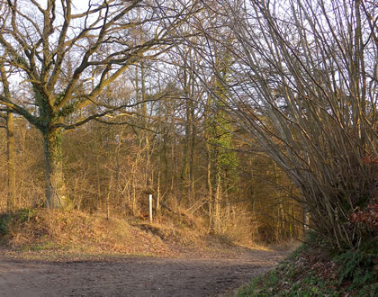 na Krüüzkamp funnen wi den Wegwieser "Alte Travemünder