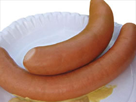 So üm Klock elfen gäf dat dann Bockwurst. Nee, nee nich jedereen hett de köfft. 2,50 kost de Wust ut Anklam. Na en half Stunn was de groote Zinkwann aver doch lerrig. Meisten güng et denn wieder op den Saal. Jau wenn bei Capri die rode Sunn im Meer versinkt". Wi wi stunnen tau de Knien innen Snei. Klock een speelte de Kapell Auf Wiedersehn, ... bliv nich