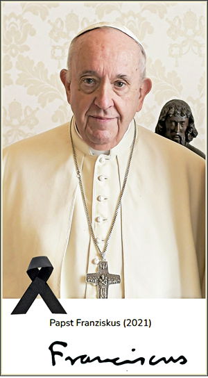 An’n Ostermaondag, den 21. April 2025, störw Paopst Franziskus, born at Jorge Mario Bergoglio, in dat hooge Öller van 88 Johre. An'n Vördag, den Oostersönndag, harr hei noch den Segen för dei Welt spennt; in dei Nacht is hei gaohn. Hei hett bookstäävlich "dat Tiedliche segent". Wat för ein Afgang för ein fraomen Christenminschen! Dei Dood van den Üppsten van dei katholschke Karken maokt dei heile Welt truurig. Dei eierste Paopst ut Südamerikao stünd för ein sporsaomet Läben, för soziaole Gerechtigkeit un för eine bätere Ümwelt. Nao seine Waohl at Paopst in dat Johr 2013 achde hei up dei Armen un dei minneachten Menschken. Dei Karken schull mehr barmhartig wän un Leiwde wiesen. Sien oprichtig un bescheiden Wäsen, sien Hartensfraomigkeit un persönliche Integrität was so äöwertügen, dat dei Minschken in aal dei Welt em vertrugen un em hoch achten dän. Blieben dait Paopst Franziskus sien Wark at Reformer un Brüggenbawer. In siene Amtstied güng et üm Aktionen gägen den Klimawannel, för den bäteren Ümgang mit dei annern Religionen un för moderne Karken-Strukturen. Un dorbi aaltied üm unbedingte Minschlichkeit. Dat wieset uck dat Wappen, dat Franziskus sik tauleggt hett: