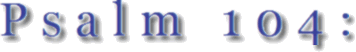 Herrn, mien Seel! Den Heben spannst Du ut as en Telt. Du buust Dien Huus baben vun't Water. Storm un Wind sünd Diene Boten, Du lettst en Quell na de annern ut de Grund kamen, dat Water löppt mang de Bargen henlang. All dat Veeh hett to drinken, dor sitt de Vagels an't Över un se singt up de Telgen. Du lettst dat vun baben dal up de Bargen regen. Gras lettst Du wassen för dat Veeh un Saat för de Minschen to'n Ackerbu, dat Broot ut de Eerd kümmt, un Wien, de dat Minschenhart froh maakt. Den Maand hest Du maakt, dor deelt sik dat Johr na in. De Sünn weet, wonehr se ünnergahn mutt. Wenn de Sünn upgahn deit, dennso geiht de Minsch an sien Arbeit bet an den Abend. Herr, wat hest Du nich allens maakt. Allens, wat dor leevt un weevt, dat luurt up Di, dat Du ehr to leven giffst, wenn't an de Tiet is. Wenn Du ehr wat giffst, denn nehmt se dat.