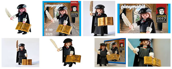 Also, Martin heet mit Tonaam Luther un is vun "playmobil". Un he steiht bi uns up'n CD-Regaal. Swatt Kledaaschen hett he an un 'n swatten Hoot up, mit Fedderkiel in de rechte un de Översetten vun't Olle un Niege Testament in de linke Hand. "En faste Borg is unse Gott, en gode Wehr un Waffen!" Dat is doch wat!