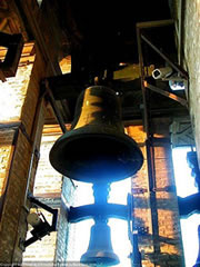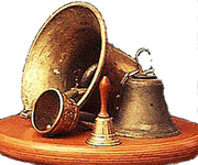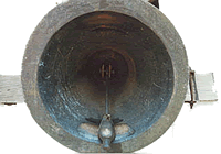 ![]() Glocken orrer Schellen un Zimbeln gifft dat al, so lang de Minschen mit Metall arbeiten köönt, smelten, geten, hämmern un so. In dat ole Babylon hebbt se welk ut Ton brennt. Toeerst weer dat mit Metall in Asien, besünners in China, bekannt. De hebbt dat al 1000 vör Christus kunnt. Later keem disse Kunst dörch de Kelten över Vorderasien in de Mittelmeerlänner un na Britannien. Denn ok na Skandinavien, Island, Irland un na Rußland. De Russen hebbt later woll de meisten un gröttsten Glocken tostannen kregen. An'n Anfang weern de Glocken man lüürlütt, se weern mehr Schellen. In heel fröhe Tiet weer ehr Bimmeln en Afwehr gegen böös Geister un Töver un Unheil. Dat Bimmeln sull de Minschen schütten. Ok de Deerten up de Weid kregen Glocken ümhangt as Schutz vör Blitzslag un Unfall. Dat Bimmeln kunn ok helpen, dat een dat Veeh wedderfinnen kunn, wenn sik mal en verlopen harr. Wi kennt de Koh-Glocken hütigendaags ja noch ut de Bargen. In't Middelöller harrn de "Hofnarren" de Kabarettisten vun dormals as Teken för ehre "Narrenfreiheit" lütte Glocken orrer Schellen an ehre Kapp orrer an ehren Rock. So dörven se ahn Angst vör Straaf kritische Wohrheiten de mächtigen Herren in't Gesicht seggen, ehr enen Spegel vör de Ogen hollen. In de Bibel warrt ut de fröhe Tiet vun Israel vertellt: Un vun König David warrt vertellt, dat he bi'n Inzug vun de Hillige Lade na Jerusalem vör den Festtog danzen dee mit Harfen (Gitarren) un mit Glockenklang. De Christen hebbt Glocken toeerst as Heidenkraam ansehen. "Un wenn een noch soveel