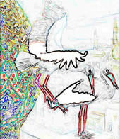 Klock acht Meister Adebor dor rümstolzieren un sik wat to freten