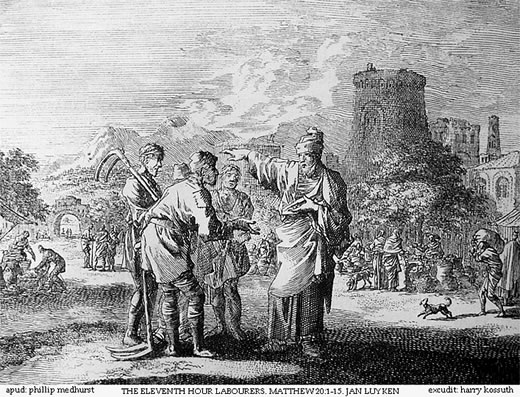 Hett Jesus mit düsse Geschicht nich op de sülvigen Fragen antert, de uns ok hüüt ümdrieven doot? Is dat nich ok hüüt so, dat de Lüüd nich to den Lohn kamen deen, vun den se ok leven kunnen? Ok de Arbeiders to Jesu Tieden hebben dat toierst nich för gerecht holen: All kreegen densülvigen Lohn, egaal wo lang se an Arbeiden weern, den Lohn, den se mit den Arbeitgever afmookt harrn. Hebbt se begrepen, wat de Arbeidgever mit sien Hanneln meent hett?