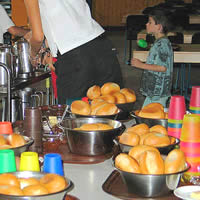 dorüm sorgt se ok för den Liev: Jesus Christus hett eerst mal 5000 Minschen Broot un Fisch to eten geven, bevör he de Lüüd wat vun unsen Herrgott vertellt hett. De groot Albert Schweitzer hett in Lambarene de Leprakranken toeerst