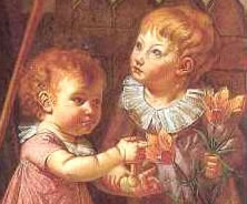 in de Kunsthall in Hamborg. Up de Welt kamen is he in Wolgast, dicht an de Oostsee. Sien Vadder weer dor Schipps-Bumeister un Reeder. Philipp Otto Runge hett toeerst Koopmann lehrt, man denn is he Maler worrn, en Maler mit ganz egen un faste Vörstellungen. Vun Huus ut weer he to'n ordentlichen Christenminschen uptrocken. He hett sik mal beklaagt, dat de Minschen keen Kinner sien muchen, dat se ehren Kinnergloben verloren harrn. Kinner un Blomen, de hett he geern maalt. Dat gifft en Bild vun em: "De Morgen" heet dat, dor liggt en lütt Kind in de Natur up'n Rüüch. Arms un Been na baben reckt un rundüm Blomen un Büsch un Bööm. Wunnerschöön! Man ok Musik - dor mag een sik över wunnern - un Mathematik