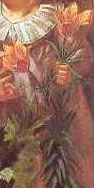 geiht. - De sparrt in. Un denn sünd dor de Blomen, dat Gröön, Göösblöömken - männicheen seggt dor ok woll Mardelbloom to - lütt un bescheiden - kickt een gor nich na hen, un jümmers sünd se dor. Kann een sik, wenn he man will, an freuen. Schöne grote Efeu-Bläder waßt an de Eer. Efeu is dat ganze Johr över gröön, dat is tru. Dat Höpen, dat blifft uns. Bi de Kinner, dor sünd de Lilien. Se sünd dat Teken för dat Reine, dat Unschullige. As de Engel Gabriel to Maria kümmt - he künnigt ehr ehren Söhn an - dor bringt he ehr 'ne Lilie mit. Up vele Biller is dat so to sehen: Kinner un Lilien, de höört tosamen. Un denn is dor noch en Bloom up uns' Bild, vun de heff ik de ganze