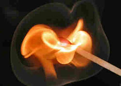 langt de Flamm vun Hans sien Licht na de Papeer-Servietten röver, un mit'nmal