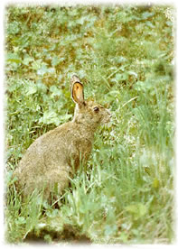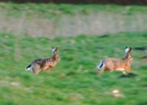 Hinnerk geev kein Rauh nich, Vadding müßt mit. Un richtig, dor up de Huuskoppel sprüngen se in de Hööcht un haugten sik mit de Vörrerpoten, de Hasen. Vadding, wat schall dat, sünd de füünsch up eenanner? Aver nich doch, de freugt sik, dat de lege Tiet mit Ies un Snee vörbi is. De Sünn hett ehr hüüt warmt. De danzt den Vörjohrs-Freuden-Danz!