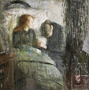 Dröf se an dat Bett vun de kranke Fruu ween?