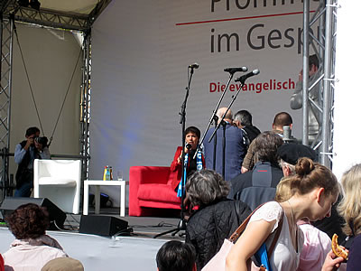 5. Dag: Sünndag Gottesfier to'n Afsluss vun Karkendag. Öber 100 000 Minschen in'n Stadtpark un Willi un Sabine tohuus op Sofa vör'n Kiekschapp.