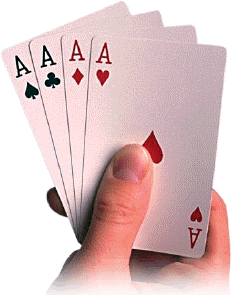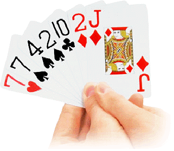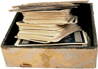 Dwarrs vör mi seet een Mann, dee weer mit Speelkorten to öven.
