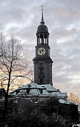 Wi sünd achter den "Michel" hoochkomen, sotoseggen "Dörch de kole Köök". Noch weern keen Lüüd to sehen, an Sieden-Portal sehn wi en Fru ringohen ik sä: "Loot uns doch eenfach mit dörchhuschen!" Mien Dochter füng an to lachen un anter: "Nein, Mami, wir haben doch Karten, wir müssen schon durch das Hauptportal!"