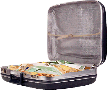noh alle Sieden winkt un den kantigen Kuffer mit all de Packen vun