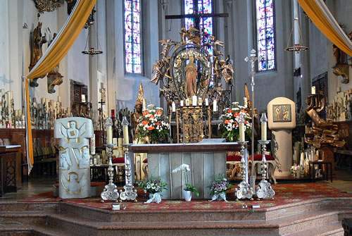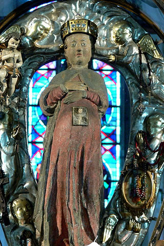 De Maria dor süht nich besünners moije ut. Dor is uk nich alltoväl gollen Klööer to seihn. Up 'n Kopp dregg se 'ne Krone. Ehr Gesicht wiest ehrder dat Gesicht van ein einfachet Buuernwicht, villicht as van eint dor up den Bogenbarg. Un so seiht wi Katholschen dat mit Maria ja uk: Se is eine van us, ein Menschk jüst as wi. Man se heff sik heil up Gott inlaoten. Maria kann as ein Spägel för us wäsen. Se heff Jesus to de Welt brocht. Un dat is eine Upgaov för aale Mensken, to aale Tieden, un nich bloss för Fraulüe. Dat is uk noch vandaoge use Saoke. Use Gloven wedd uk in tokaomen Tieden noch leven, wenn wi immer weer van Neien Gott to de Welt bringen daut. Bloß so kann use Gloven naohjungen.