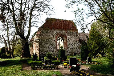 överschrifft sienen Bericht: "Hulen an frömde Wader". Un denn pultert dat een Nacht. Geiht de Krieg wedder loos? Ne, dat weern bloots de gootschen Gewölv un de Dackstauhl vun de ut dat 15. Johrhunnert stammende Kark. Dor wöör nu nich afsparrt: "Einsturzgefahr! Eltern haften für ihre Kinder!" Ne, elkeen kunn in de Ruin rümmerstockern. Denn wöörn de sworen Eikenbänk jümmer weniger. De sworen Dören verswünnen ok. Ut dat Pastoraat qualmten de Brennhexen, de harrn as Schosteen en Åvenruhr, dat dörch en rutnahmen Finsterschiev na buten güng.