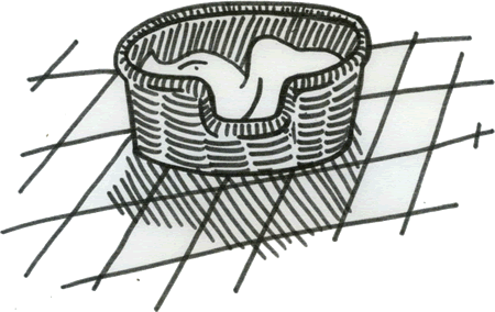 Wat anners stook hüm in de Nöäs. He luur mit d' Kopp över d' Kant — dor stunn'n twee Potten. Eers moal kieken wat dat wee. Moder kunn he denn jümmers noch söken. Vöörsichtich tweemoal üm de Potten to — man kunn joa nie nich weeten. Dor keem nümms, de sä, "Dat is mien, hau off!" Also kunn man dat woagen. Jungedi — dat wee joa rein wat Lekkers! Schmook hoast so good as dat in Huus.