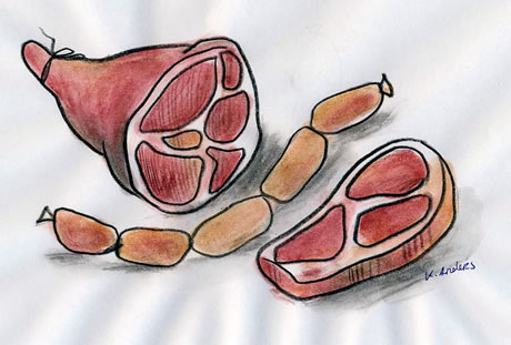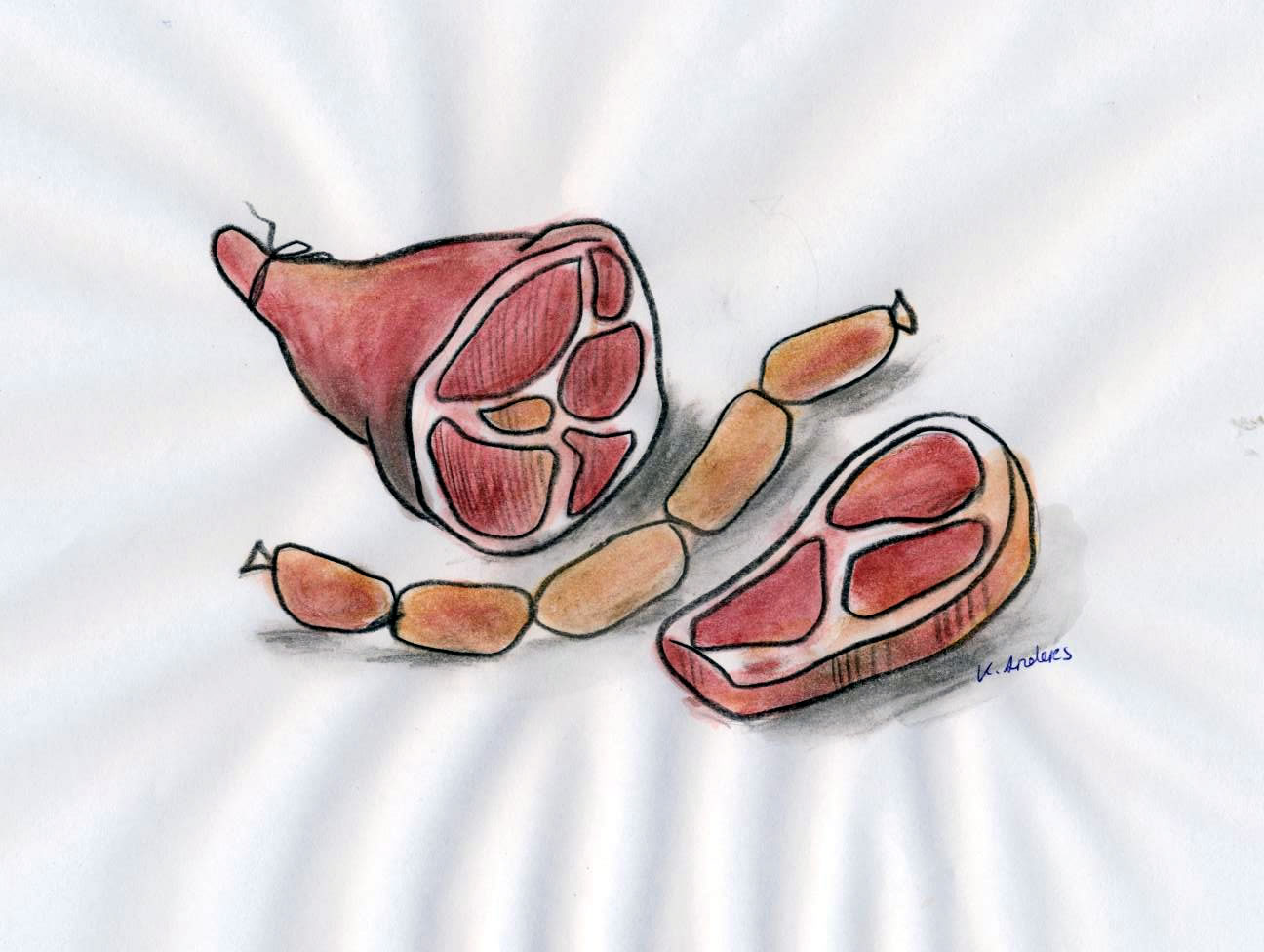 mit de Spekk- un Schinkensieden mit de Wusten in Kringels