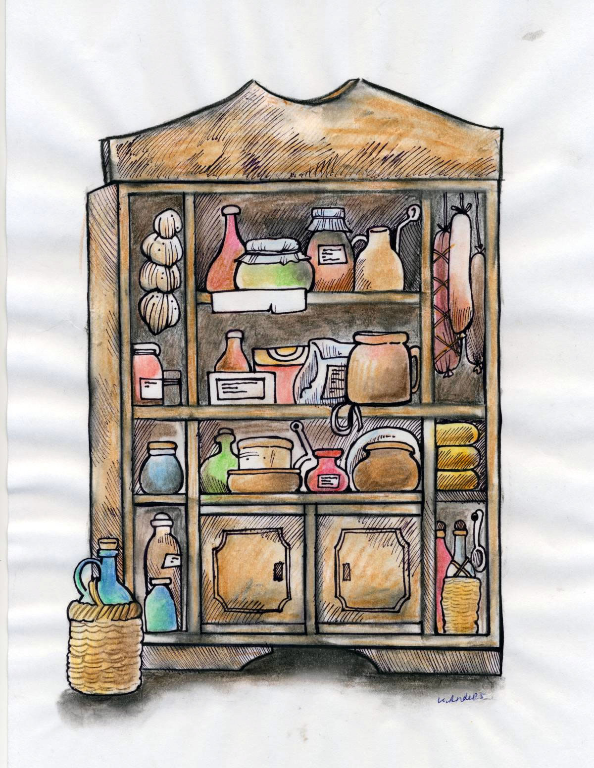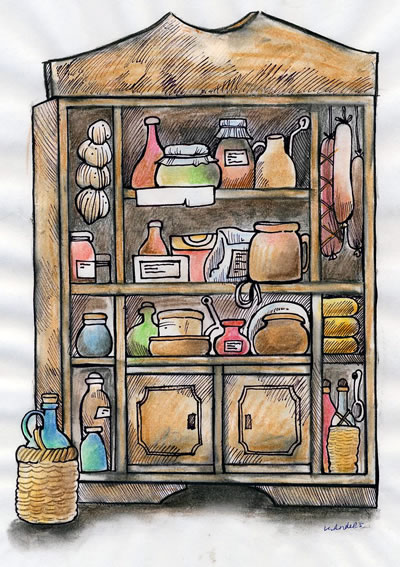 In d' Spieskoamer stunn'n Potten mit söten Room mit Schmoalt