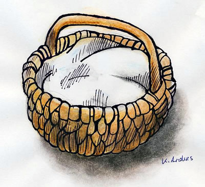 de Köäkendör stunn 'n Wilgenkörf moi mit