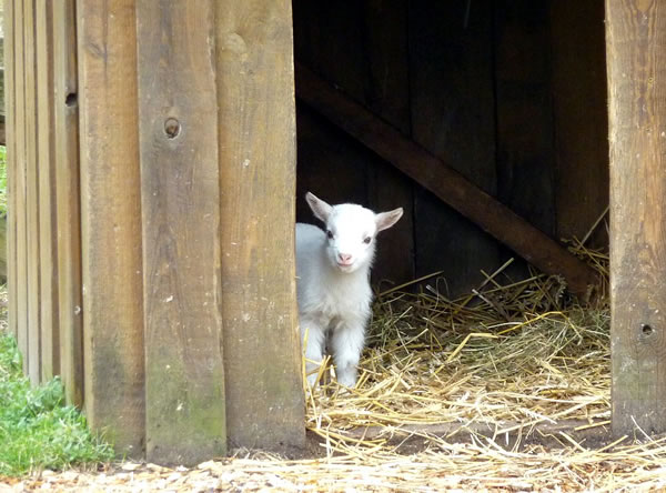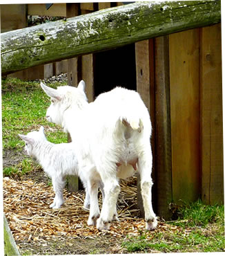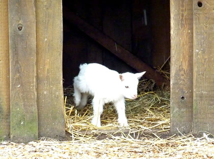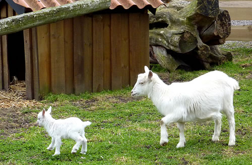 Moder harr ehr twoors verbaden, op hoge Saken to kladdern, aver Flocki weer dat ganz egaal. Fix kladder se up en Boomstamm. Vun dor baven kunn se villicht wieder kieken. "Meeeh! Meeeh!", reep se luud na de anner Siet hen. Dorbi weer se meist hindal fullen! Aver de anner lütte Zeeg weer eenfach weg. Wat schaad!