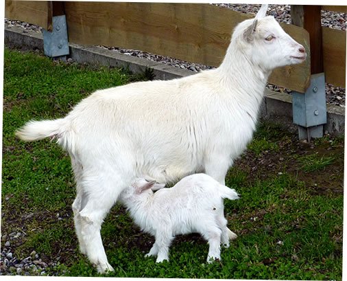Nahdem Flocki ehr'n Döss stillt harr, leep se wieder. De Melk vun Mama harr ehr goot smeckt. Se plinker na Mama. De füng an un geev ehr noch en ganzen Barg gode Raatslääg: "Loop nich to wied weg! Klabaster nich op ganz hoge Saken! Fang keen Striet mit anner Zegen an! Un ok nich mit anner Deerten! Maak dien wittes Fell nich schietig! Pass op, dat du..." "Och Mama, nu langt dat! Giff mi lever noch en Sluck Melk!"