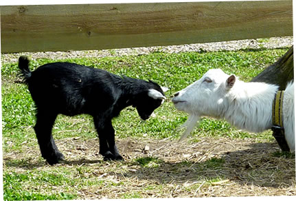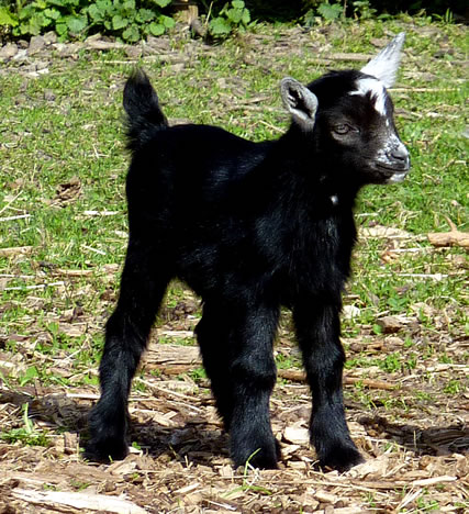 Flocki kriggt Besöök Gistern weer Flocki alleen up Tuur gahn. Hüüt weer ümmer noch godes Weder. De Sünn meen dat richtig good! De lütten Zegen söchen sogor den Schadden, so warm wöör dat. Besöök ut de Naverschap weer kamen. Un mit de Naverszegen keem ok en lütt swatt Kobold antappelt. He keem so bilöpig achteran. Flocki möök grote Ogen. Weer dat de Naver, den se al achter den Tuun sehn harr? He harr en pickswartes, keen wittes Fell! Blots up sien Vörkopp harr he enen witten Placken, en Bless. Un de Ohren weern witt. As harr he den Kopp man kort in witte Farv duukt! Weer düt Wesen överhaupt en Zeeg...? "Doch, dat is en Zeeg", sä Mama, "en Zeeg so as du un ik. Bloots dat he en lütte Buck is. Speelt man tosamen!"