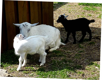 Nadem dat se sik in'n Schadden verpuust harrn, weern de lütten Zegen wedder ganz kregel, un de Sünn weer ok al en beten dal. So maschiern de twee Frünnen wedder över dat Feld. Keken sik allens nochmal niep un nau an. Flocki intresseer besünners dat Lock in'n Tuun, wo Mohrle ünnerdörch krapen weer. Se wull dat ok versöken, aver dat klapp nich. Se haar to veel Melk bi ehr Modder slappt!